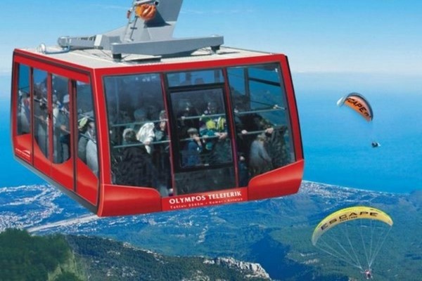 تلفريك أوليمبوس ويعتبر من أهم المعالم الواجب زيارتها في أنطاليا , يبعد الموقع ساعة تقريباً عن أنطاليا وبرتفع حتى علو 2365 متر عن سطح البحر للإستمتاع بمشاهدة أنطاليا و محيطها من الأعلى. يجب اخذ الإحتياطات اللازمة من حيث الملابس حيث تنخفض درجات الحرارة 10-15 درجة مئوية عن الشاطيء إضافة الى الرياح الشديدة.