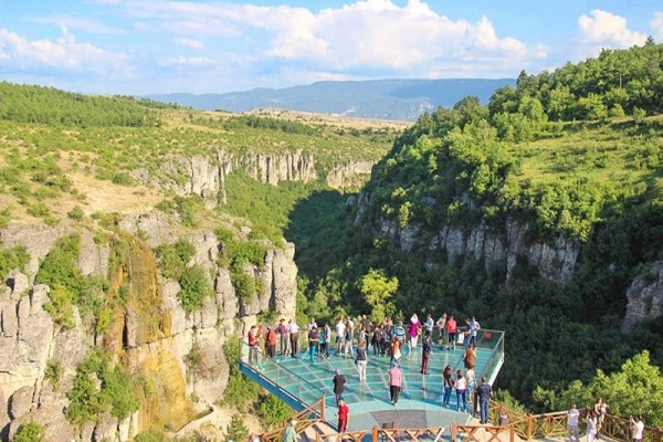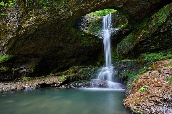 يتمتع بمنظر فريد على الرغم من أنه شلال صغير. أدى الماء إلى تآكل الصخور وشكّل مع مرور الوقت فتحة دائرية قطرها أربعة أمتار. فالشلال الذي يتدفق عبر هذه الفتحة هو الوحيد من نوعه من حيث هذا المنظر. وقد أطلق السكان المحليون علي الشلال الذي يتدفق من داخل صخرة مثقوبة.