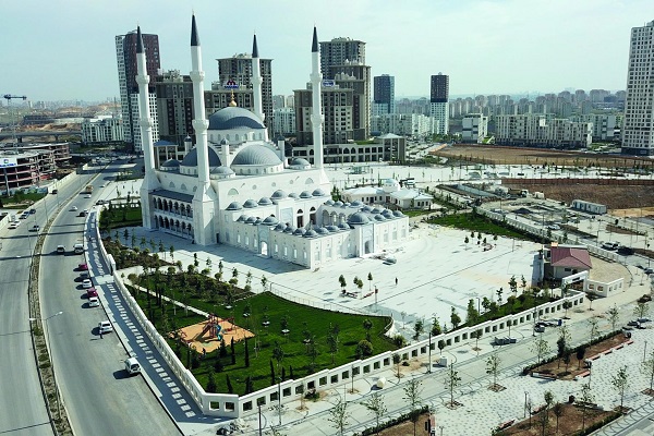 لارتفاع 40 متراً، من أهم ميزات الجامع أولا القبة الكبيرة بالوسط يحتويها قباب صغار, زُيِّنت بزخارف ملونة وذهبية, وتتربع على أربع قوائم تسمى بأرجل الفيل كما ويجذب