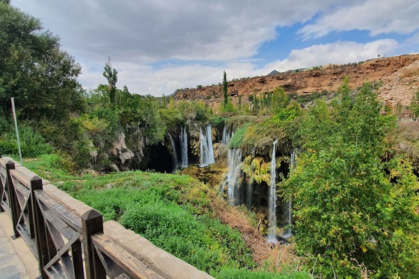 ملاحظة الشلال بشكل أفضل من منظور عين الطير من قرية Çakallar القريبة ، والتي تقع