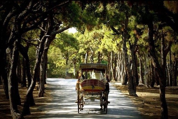 الأميرات، البعيدة عن ضوضاء المدينة.ولا سبيل للتنقل داخل الجزر إلا عبر الحصان والعربة