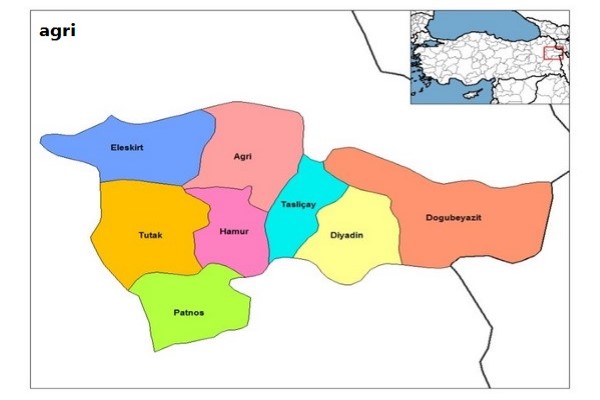 ولاية قارص ومن الغرب ولاية أرضروم ومن الجنوب ولاية فان. وسكانها أغلبهم من الكرد، وتصل نسبة الأراضي