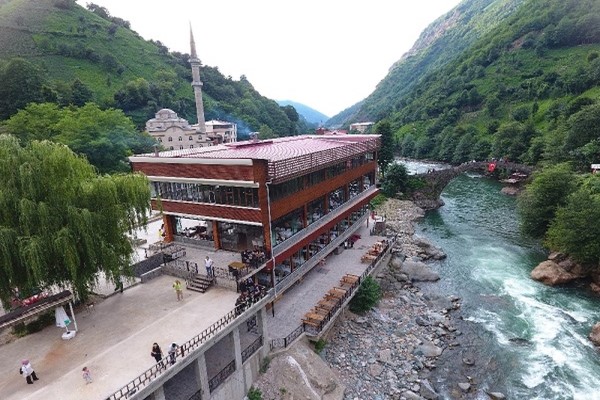 مقهى يولون ديبي المطل على النهر وعلى الجسر العثماني يبعد عن مدينة تشامليهنشين 5 كيلو متر.