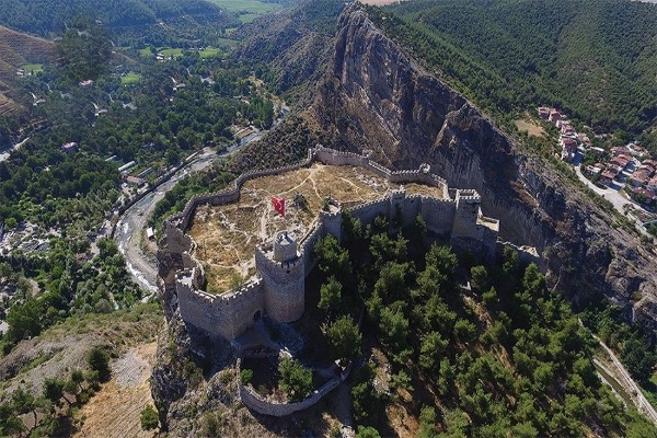 تمّ بناء هذه القلعة في القرن السابع قبل الميلاد؛ بهدف توفير الحماية للمدينة، وفي عهد كلٍ من البيزنطيين، والرومانيين، والسلجوقيين تمّ استصلاحها واستخدامها، أمّا اليوم فهي من أبرز معالم المدينة الأثريّة وأكثر ما يزوره السياح، ويوجد عدّة أسوارٍ تحيط بالمدينة تكمل المعالم الأثريّة مع القلعة؛ فهناك الأسوار الشماليّة التي تمتدّ بطول 880 متراً، والأسوار الشرقية التي تمتدّ بطول 500 متراً، والأسوار الجنوبيّة بطول 400 متراً، والغربيّة بطول 270 متراً.