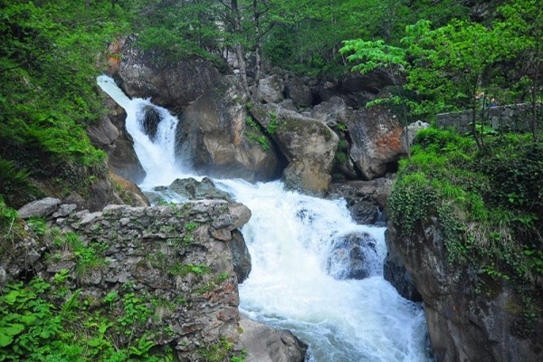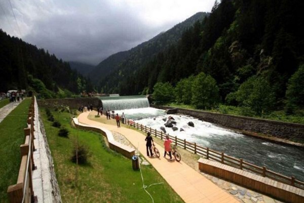 شلال أيتاش أينالي ويقع على الطريق إلا أن النهر يحول بينك وبينه، وكذلك الأشجار تحجبه.